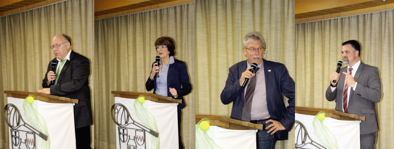 Die Grußworte sprachen: v. l. Klaus Steinruck Vorsitzender, Christa Öchsner BLSV, GErd Fröhling BTV und Heiko Menig Bürgermeister.